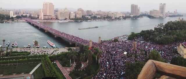 As we approached Saad Zaghloul’s square in front of the opera house and onto the Qasr El Nil Bridge, the gateway to Tahrir, we heard chants and drums and saw movie stars and street vendors chanting and literally swaying on anti-Muslim Brotherhood (MB) slogans. The bridge was packed. Packed actually was an understatement. I have not seen this ever before, and the remarkable thing is that this was also happening in ALL squares in Egypt. Upper Egypt who were 70% and 80% pro-MB (assuming elections were not rigged) has never marched against them, but now they did. I felt this passionate vibe, far from venomous but of determination that we are simply civil, NOT extremist lying and cheating mutants like what the Islamist want us to be. Around 17-33 million people were chanting against the MB.